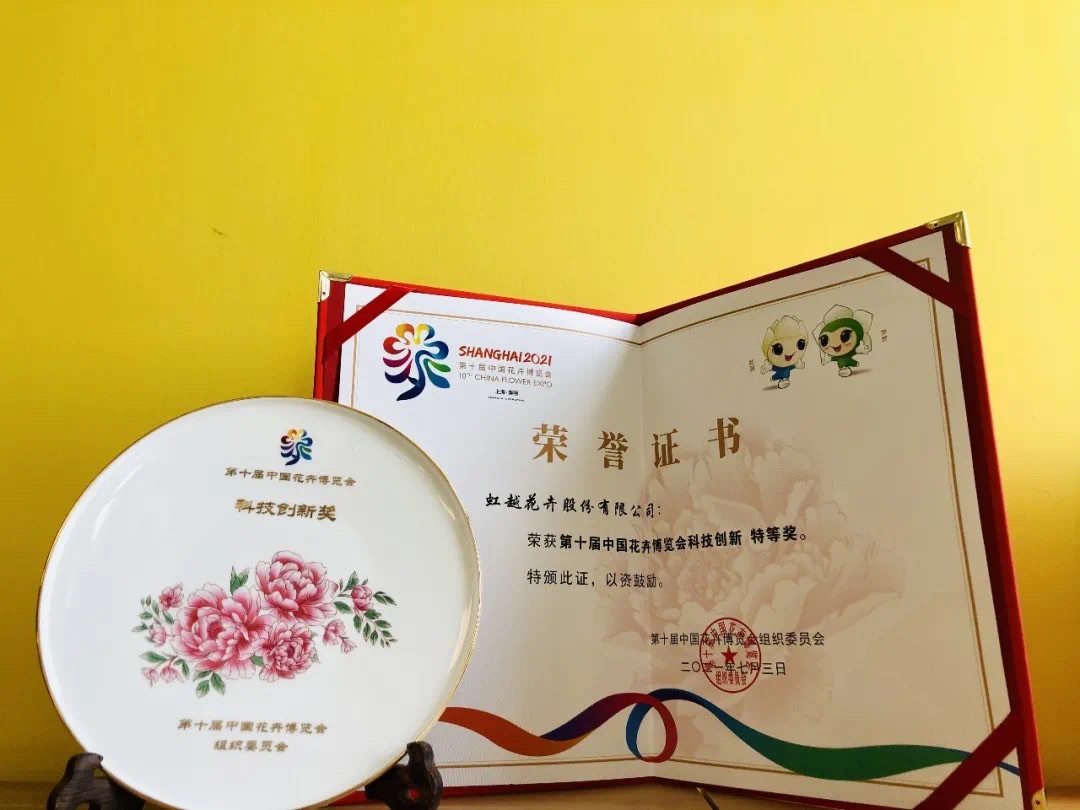 虹越花卉股份有限公司室內(nèi)展區(qū)榮獲科技創(chuàng)新特等獎(jiǎng)